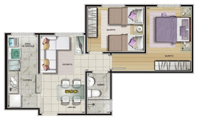 2 Dormitórios Área total: 43,82m² ou 43,82m² ou 45,96m² ou 45,96m²