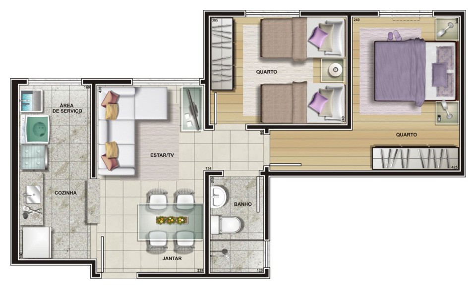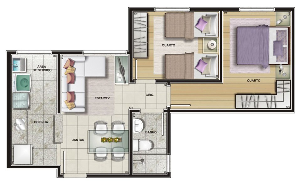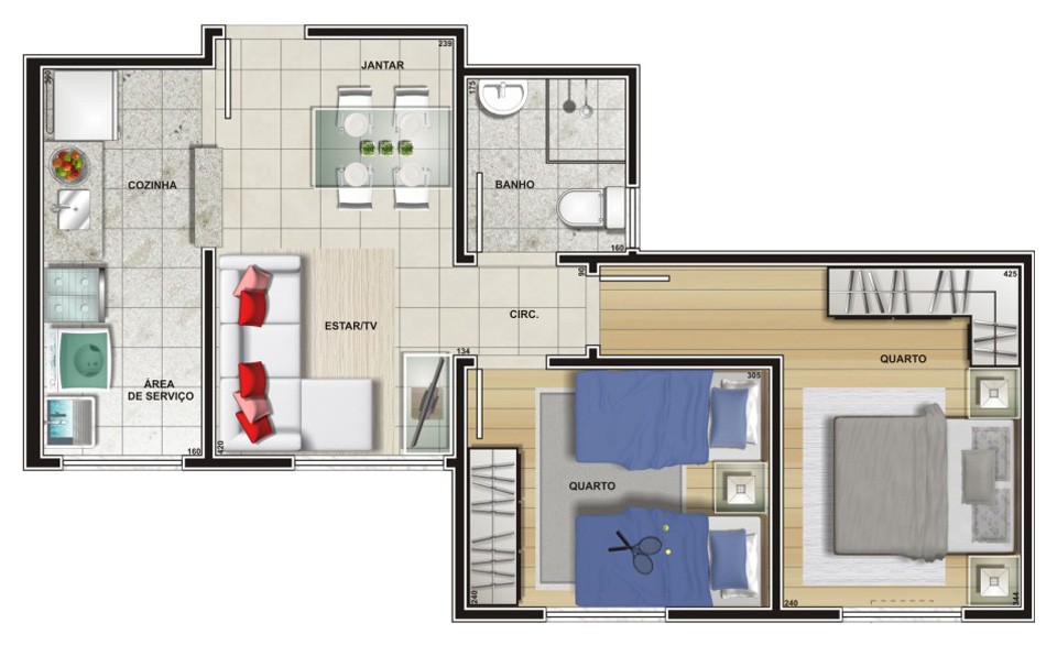 1 Dormitório Área total: 40,37m² ou 40,37m²